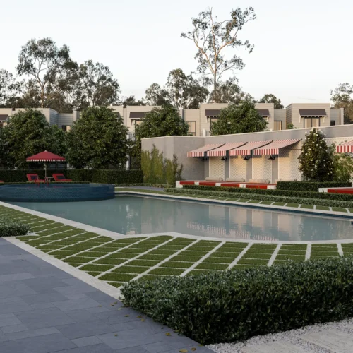 Seasons is a lush, green sanctuary featuring 68 timeless two-storey terraces in Brookwater’s exclusive Dress Circle. Offering a choice of three- and four-bedroom architecturally designed residences, the development embodies mid-century modern design, balancing sleek lines with organic forms. Masonry, timber, and stone blend seamlessly with the natural surroundings, creating a strong sense of place and connection to the outdoors.